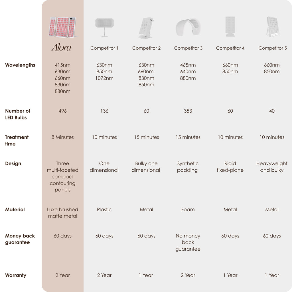 - 3 face-contouring panels featuring an industry-leading 1488 LEDs, 290% more than other leading Light therapy panels