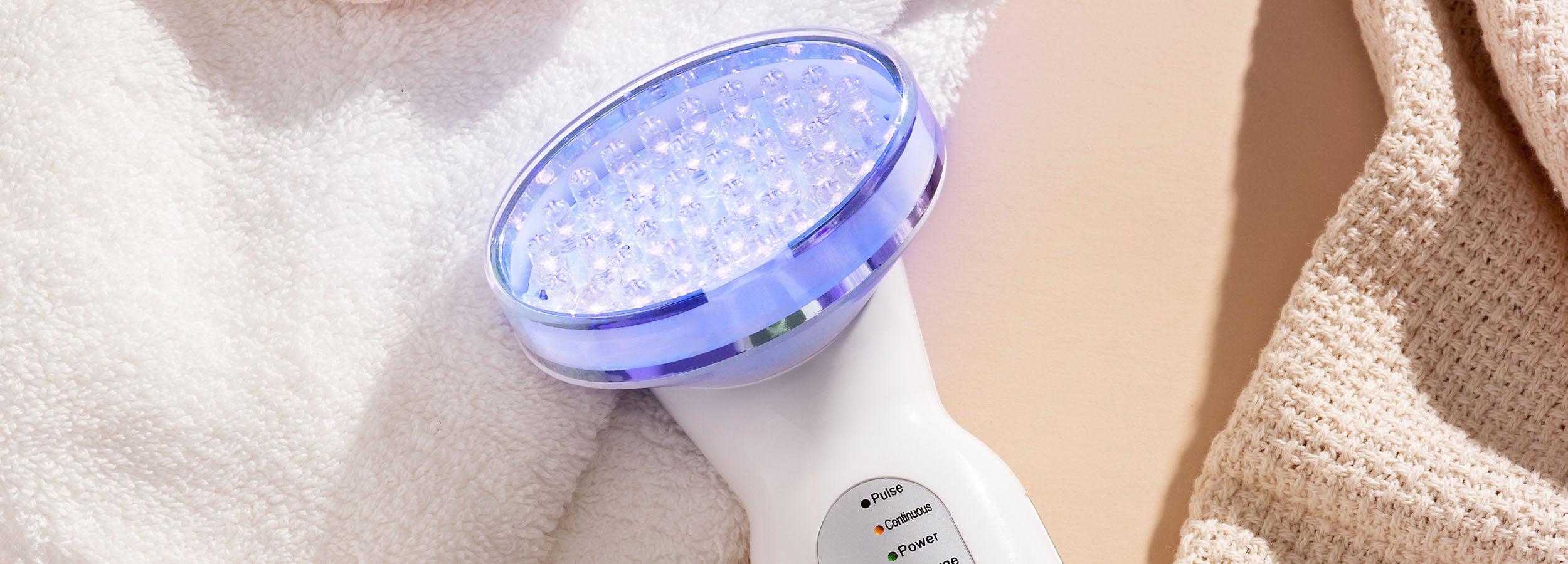 Our Blue LED+ uses 40 non-heating light bulbs to treat both face and body - it delivers a painless, non-invasive at-home treatment for blemish-prone skin