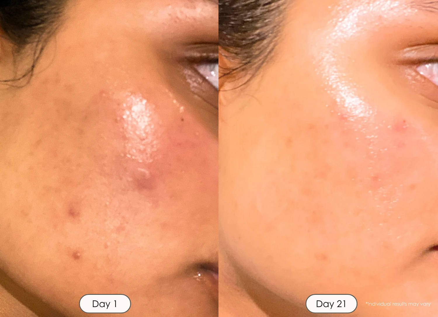 Blue light creates free radicals that destroy acne-causing bacteria. This process prevents breakouts and regulates oil production
