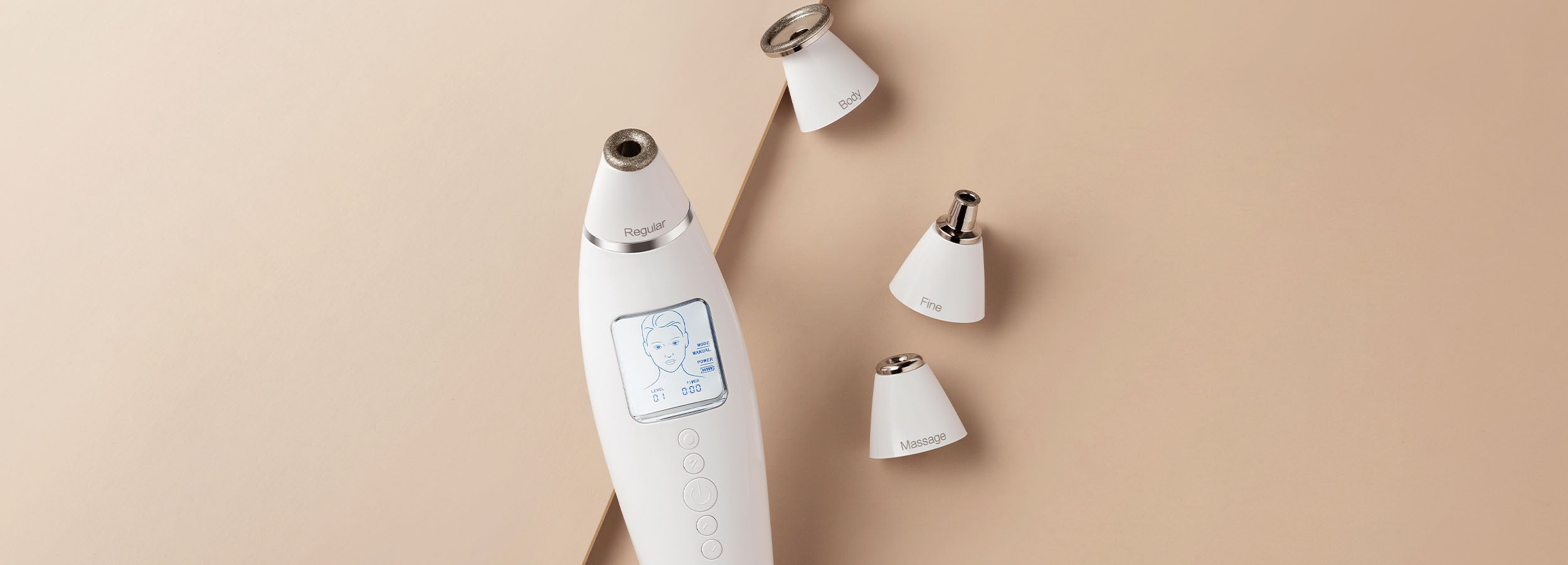 The simultaneous vacuum therapy effect suctions away excess oil and impurities to enhance the effect of microdermabrasion